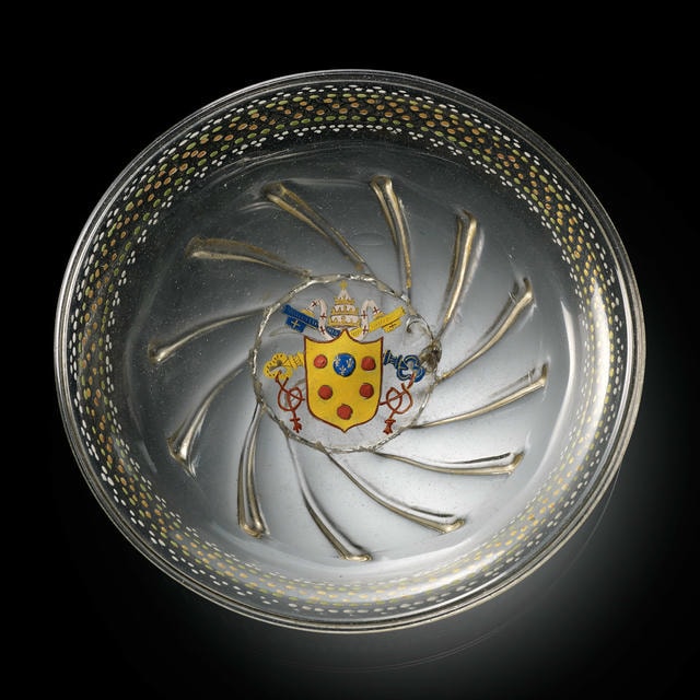 6.ダイヤモンド・ポイント彫り ヴァンジェリスティ家紋章文コンポート