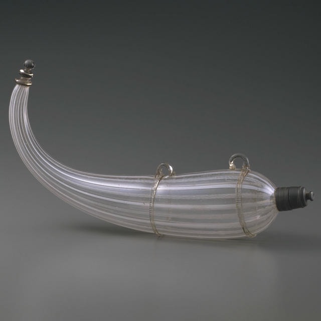 この作品は「カネヴェッタ」と呼ばれ、器の中に氷を敷き詰め、小型のワインボトルを冷やすために使われたと考えられています。ヴェネチアの熟練した職人の技術と、バロック時代初期の貴族たちの需要に応じて誕生し、祝宴を彩った作品の1つです。