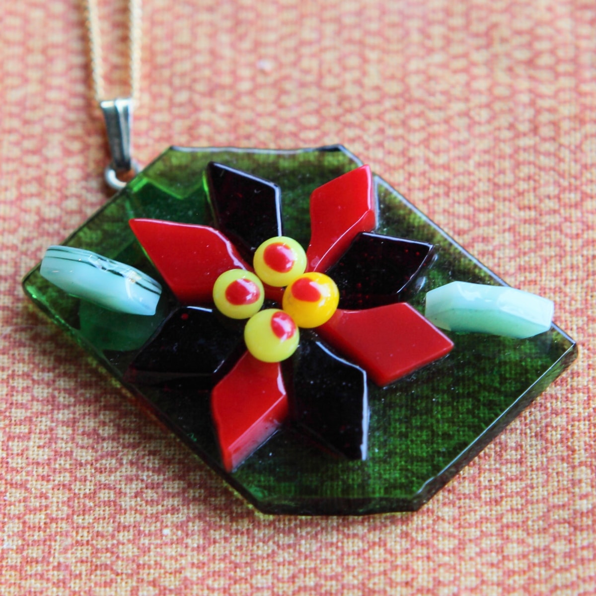 箱根ガラスの森美術館の体験工房「ヴェトロ」では、さまざまなガラスを組み合わせて熱で熔かし合わせるフュージング技法を用いたアクセサリー作りを楽しめます。通年でご利用いただけるパーツセットに加え、期間限定モチーフとして「ポインセチア」などをご用意しております。