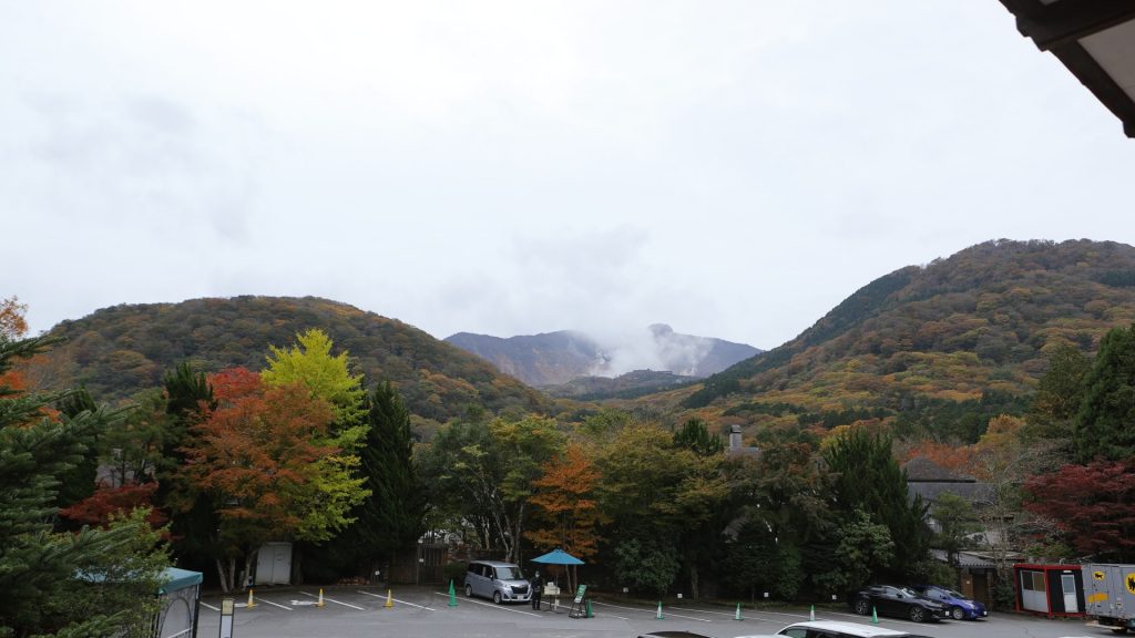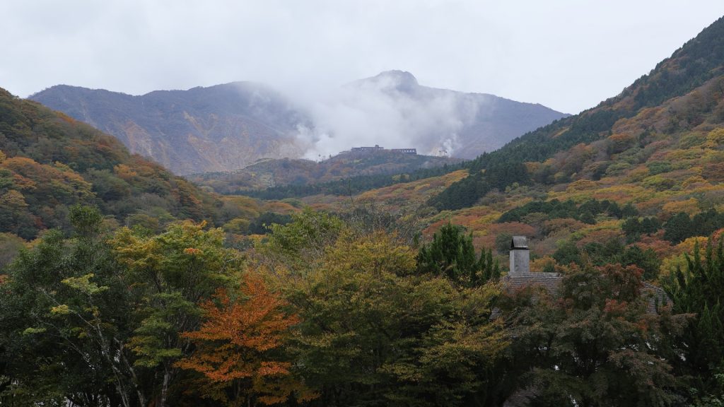箱根ガラスの森美術館から望む山々が、紅葉してきました。