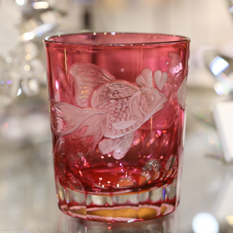 江戸切子シャーレ(麻の葉紋・蜘蛛ノ巣紋)