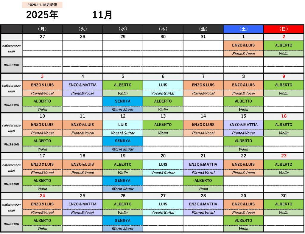 11月演奏スケジュール(11月16日更新)