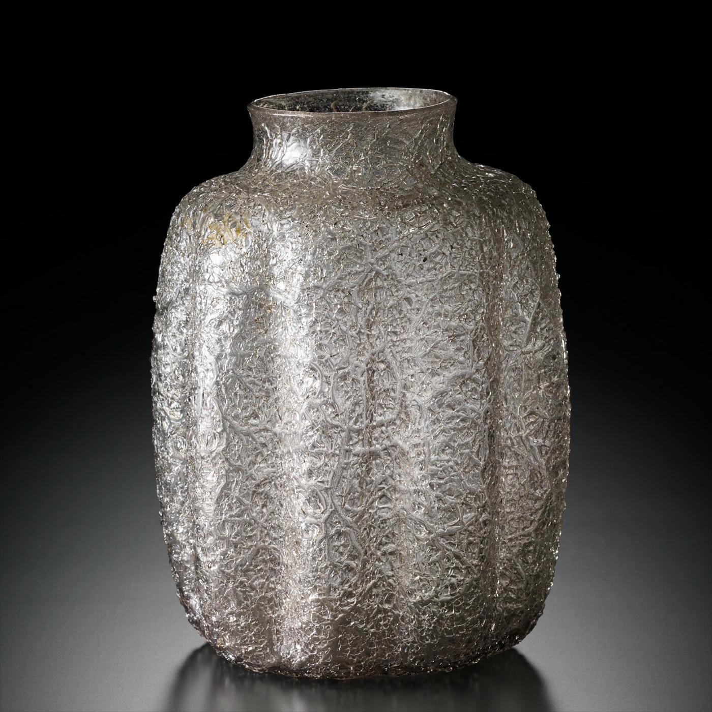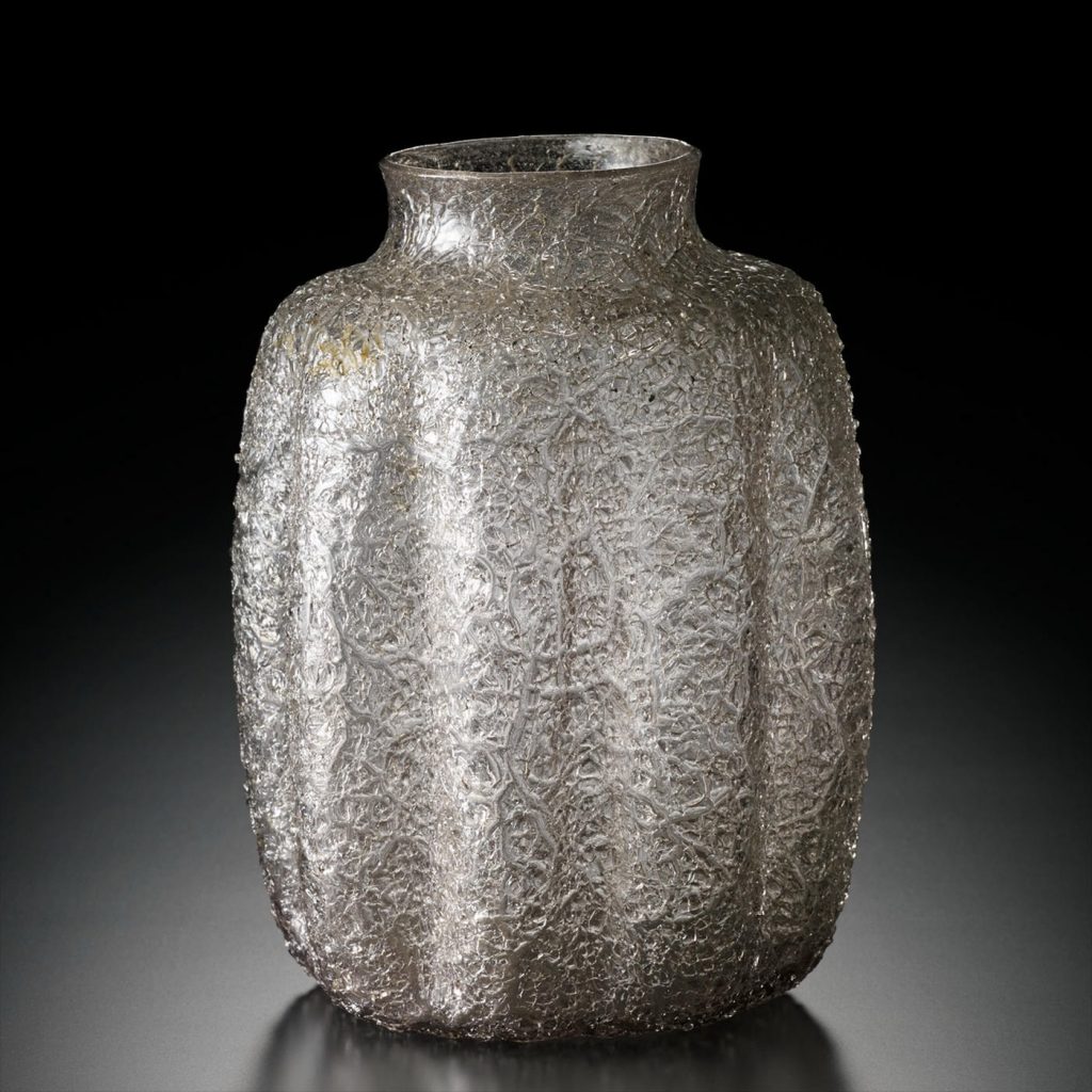16世紀から17世紀初頭にかけて、ヴェネチアン・グラスの一技法として創出されたアイス・クラック技法は、作品を成形する際、熱く熔融状態にあるときに、冷水に瞬間的に投入し、表面にマスクメロンのような氷裂文を入れる技法である。その後、加熱して亀裂の鋭角的な部分を滑らかに仕上げる。この技法は、レース・グラス技法とともにヴェネチアン・グラスの秘法の一つであった。アイス・クラック技法による作品には、瓶の他に鉢や坏など多種多様なものがあり、当時人気を博した技法の一つであったことがわかる。