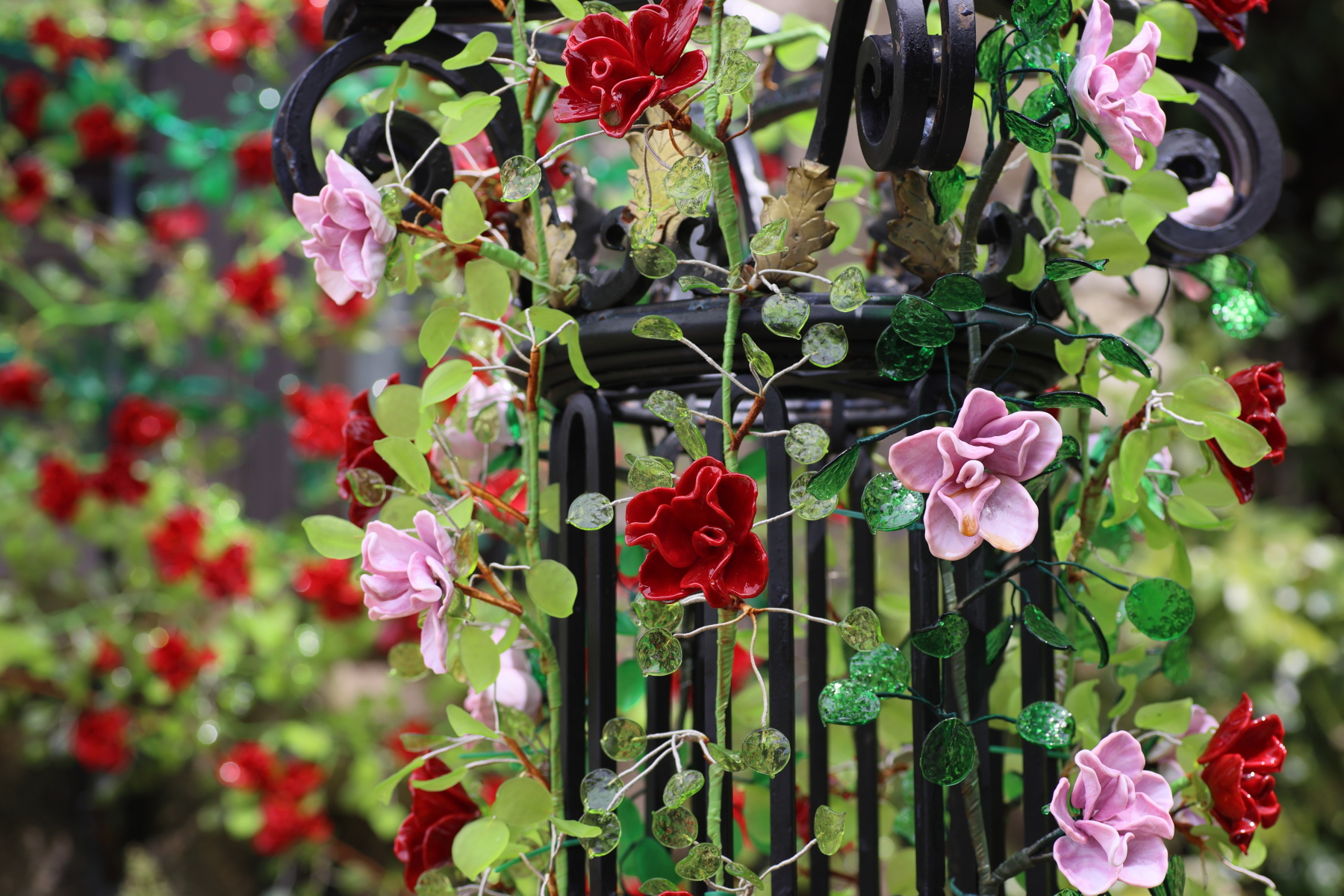 箱根ガラスの森美術館の庭園では、1,000輪のヴェネチア製「ガラスのバラ」が開花しております。ヴェネチアングラスならではの美しい色合いと柔らかな曲線のガラスのバラ。バーナーワーク職人の高い技術があるからこそ表現できる複雑な花びらや青々とした葉が、満開のローズガーデンを華やかに彩ります。