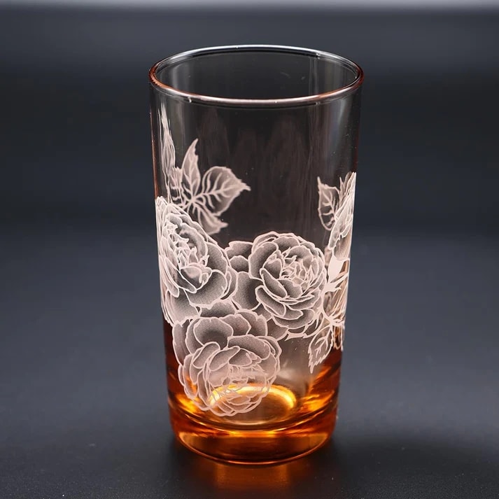 「薔薇のカラーグラス」は、鮮やかな色ガラスに繊細な薔薇模様をあしらった、華やぎ漂うグラス。光を受けて浮かび上がる薔薇は、まるで咲き誇る庭園の一瞬を閉じ込めたかのよう。ティータイムや食卓を彩り、日常に気品と華やかさを添えます。大人の休息に映える逸品、贈り物としても印象深く心を満たします。