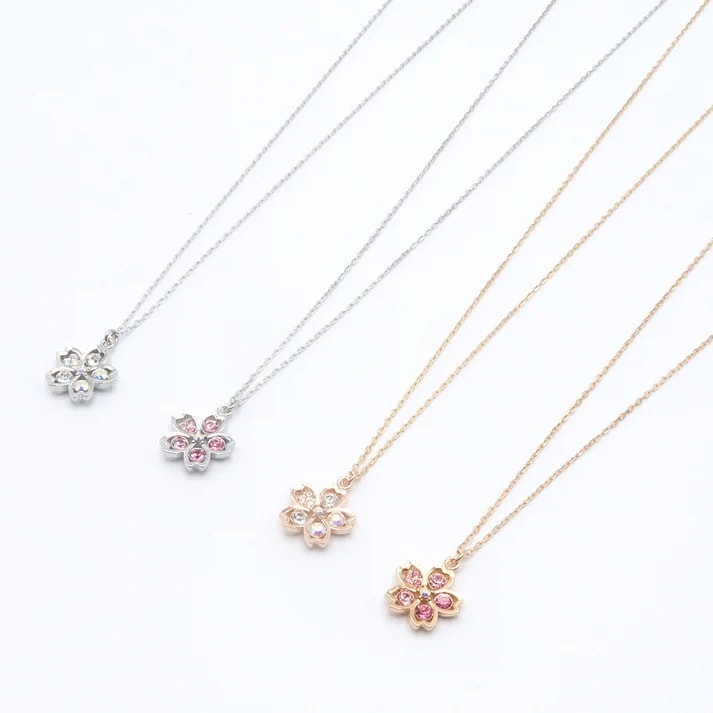 春の訪れを感じさせる、桜をモチーフにしたネックレス。クリスタルガラスを使用し上品にきらめきます。季節のギフトや自分へのご褒美にもおすすめです。