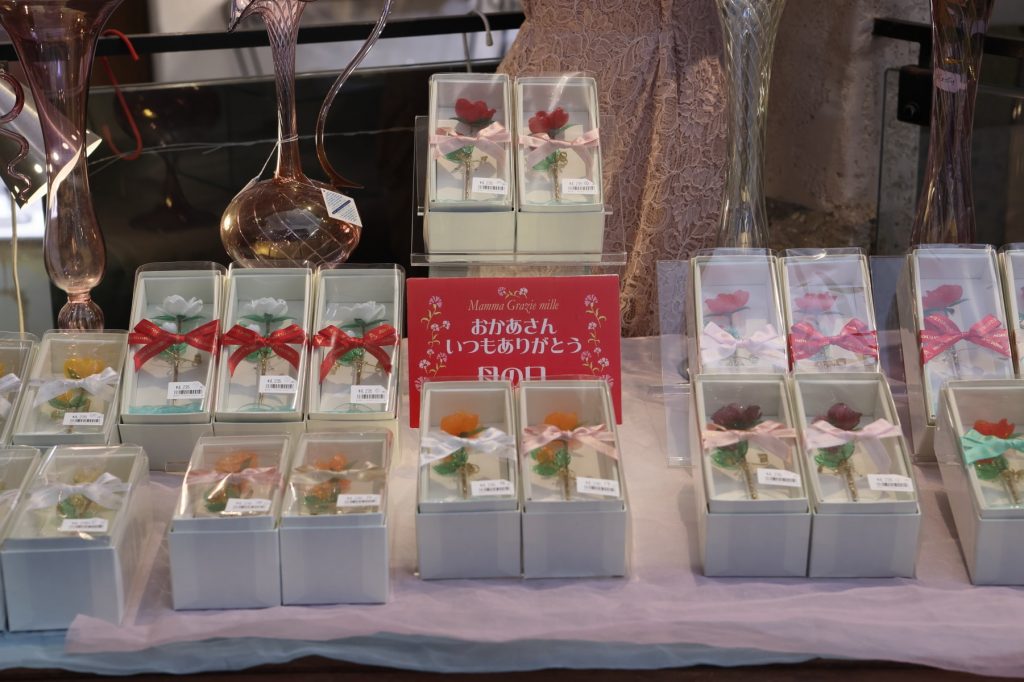 箱根ガラスの森美術館のミュージアムショップでは、母の日のギフトにもおすすめの「ガラスの花」を取り扱っております。職人の手により一つひとつ丹念に作られたガラスの花は、いつまでも色褪せることのない美しい輝きを放ちます。大切なお母様へ、日頃の感謝の思いを伝える特別な贈り物としていかがでしょうか。ギフトボックス入りの商品もご用意しております。