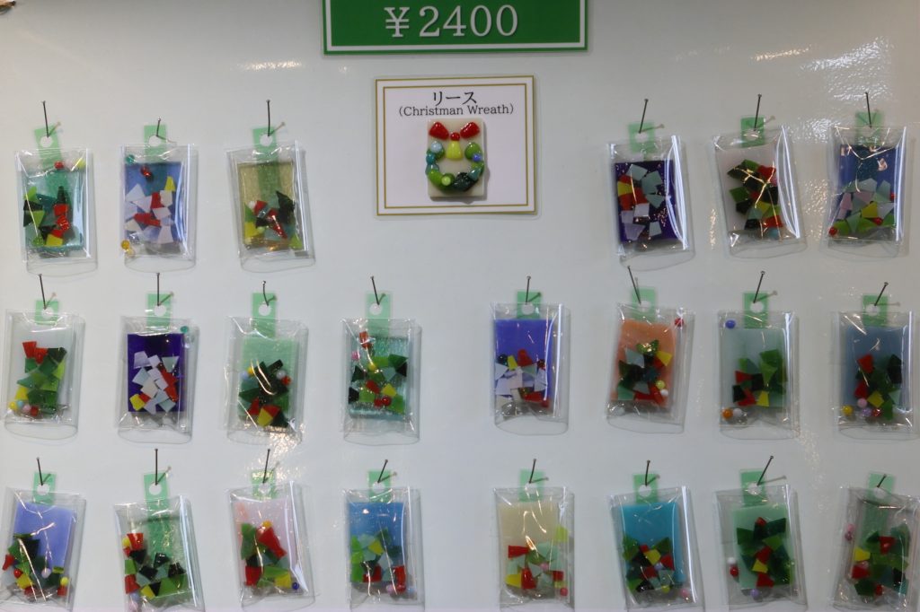 箱根ガラスの森美術館の体験工房「ヴェトロ」では、さまざまなガラスを組み合わせて熱で熔かし合わせるフュージング技法を用いたアクセサリー作りを楽しめます。通年でご利用いただけるパーツセットに加え、期間限定モチーフとして「クリスマスリース」などをご用意しております。