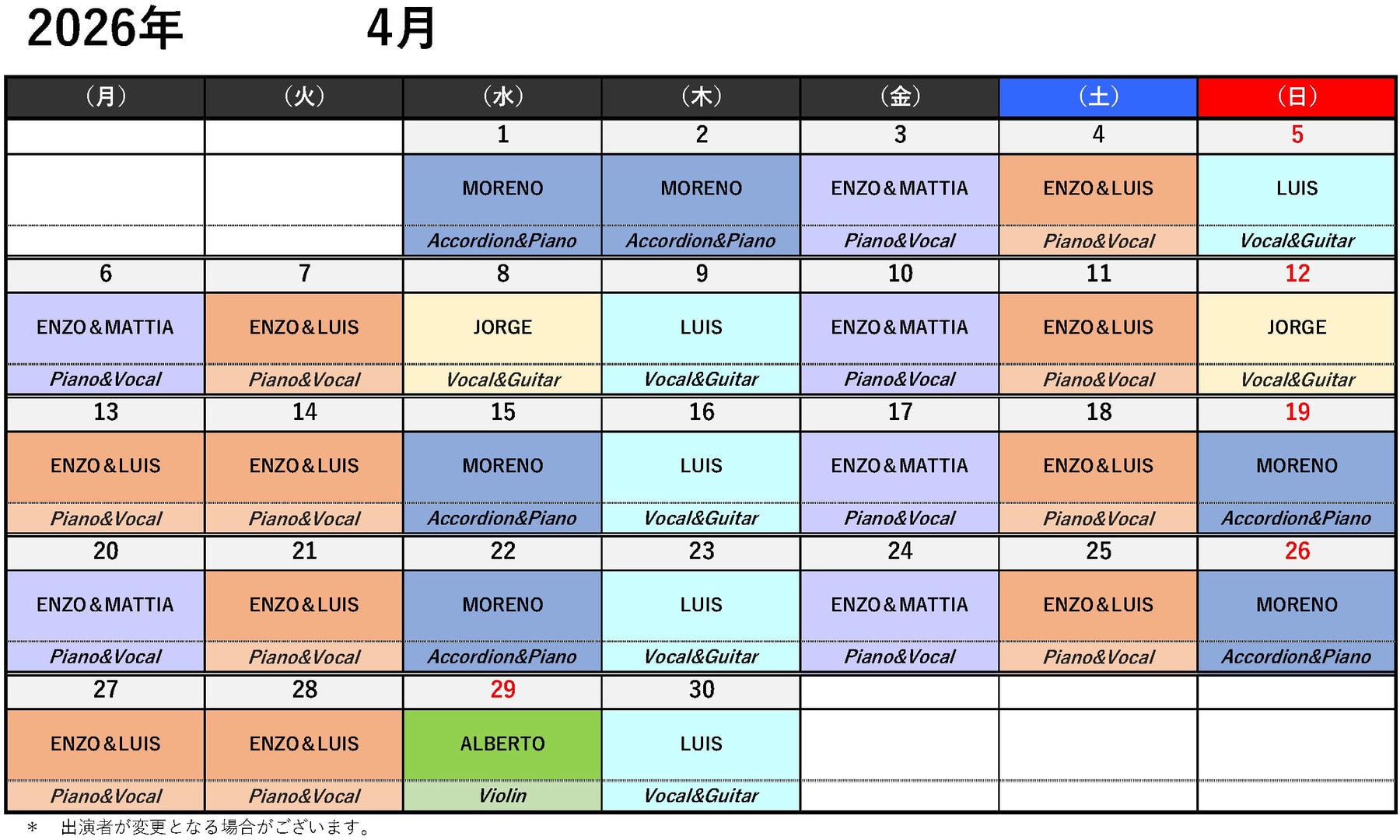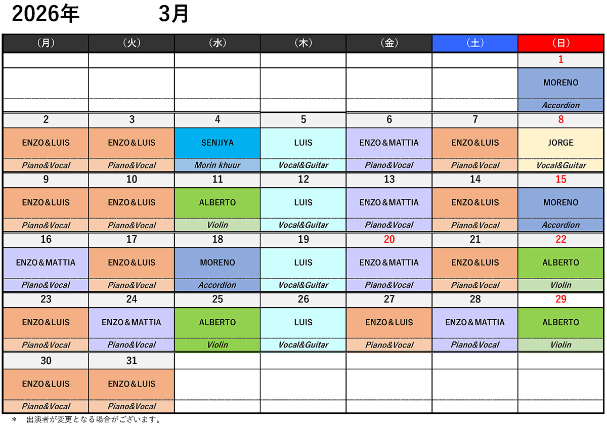 ※演奏時間の変更や休演となる場合がございます。