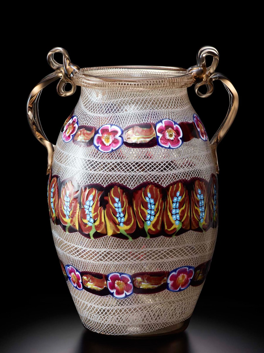 ヴェネチアン・グラスは、今日までおよそ1000年の歴史をつないできました。ヴェネチアのガラス職人たちが生み出し、ガラスを芸術品の域へと高めた装飾技法の数々は、今もガラスで芸術表現に挑む現代作家たちによって作品のなかに息づいています。日本をはじめ、世界のガラス作家たちは、現代へとつながれた技を学ぶだけでなく、それを進化させながら独自の美を追求しています。そして、ヴェネチアの伝統技法とそれぞれのルーツとが融合した彼らの作品は、本場ヴェネチアでも高く評価され、次の世代へとヴェネチアン・グラスの遺伝子をつないでいます。