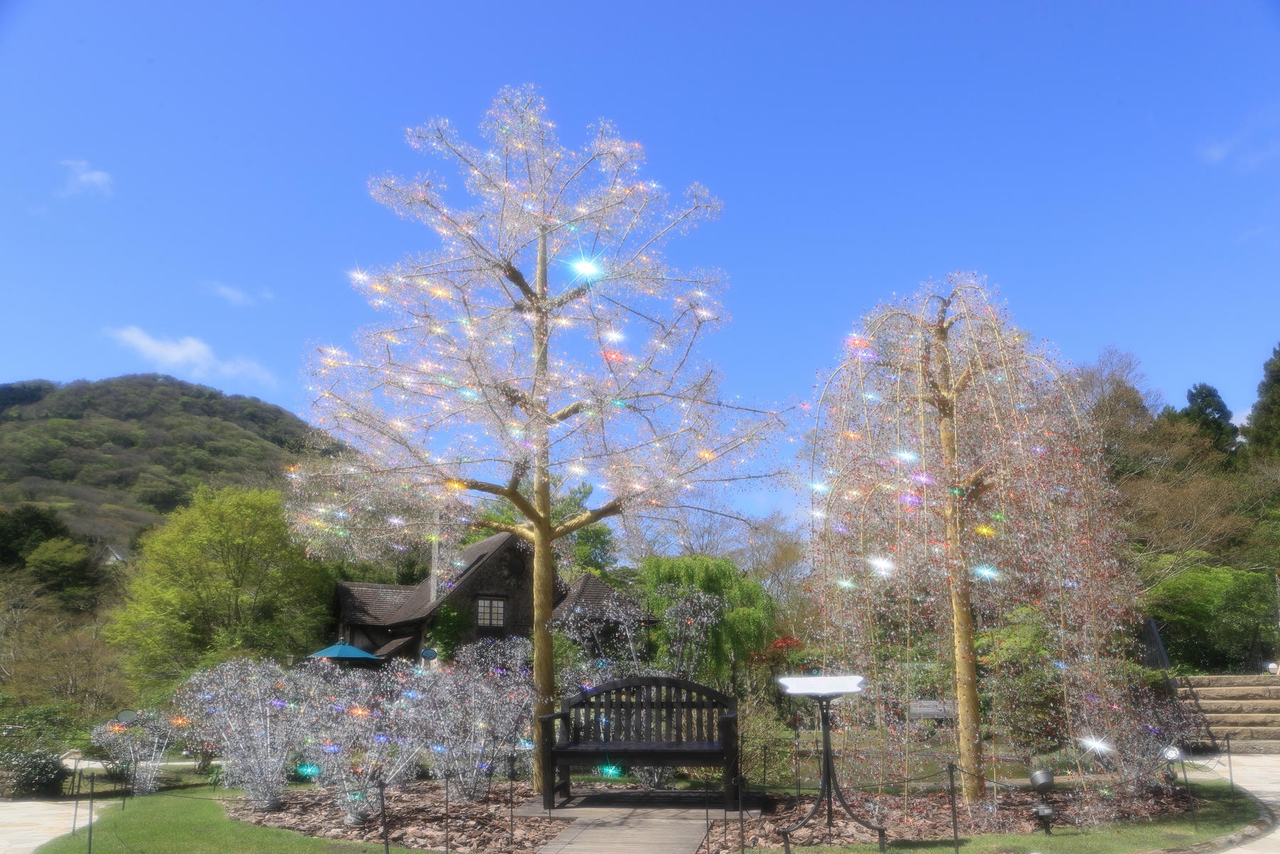 太陽光と風に輝くクリスタル・ガラスのオブジェ。春の庭園を彩ります。